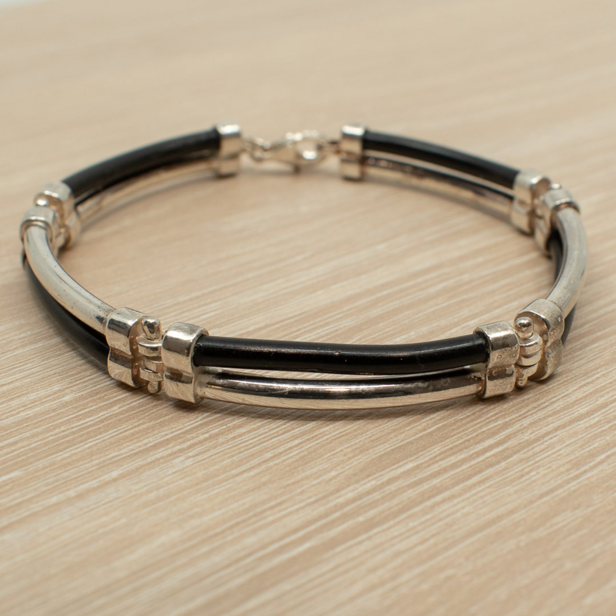Ανδρικό βραχιόλι κατασκευασμένο από καουτσούκ και ασήμι, ιδανικό δώρο για εσάς ή κάποιο αγαπημένο σας πρόσωπο.