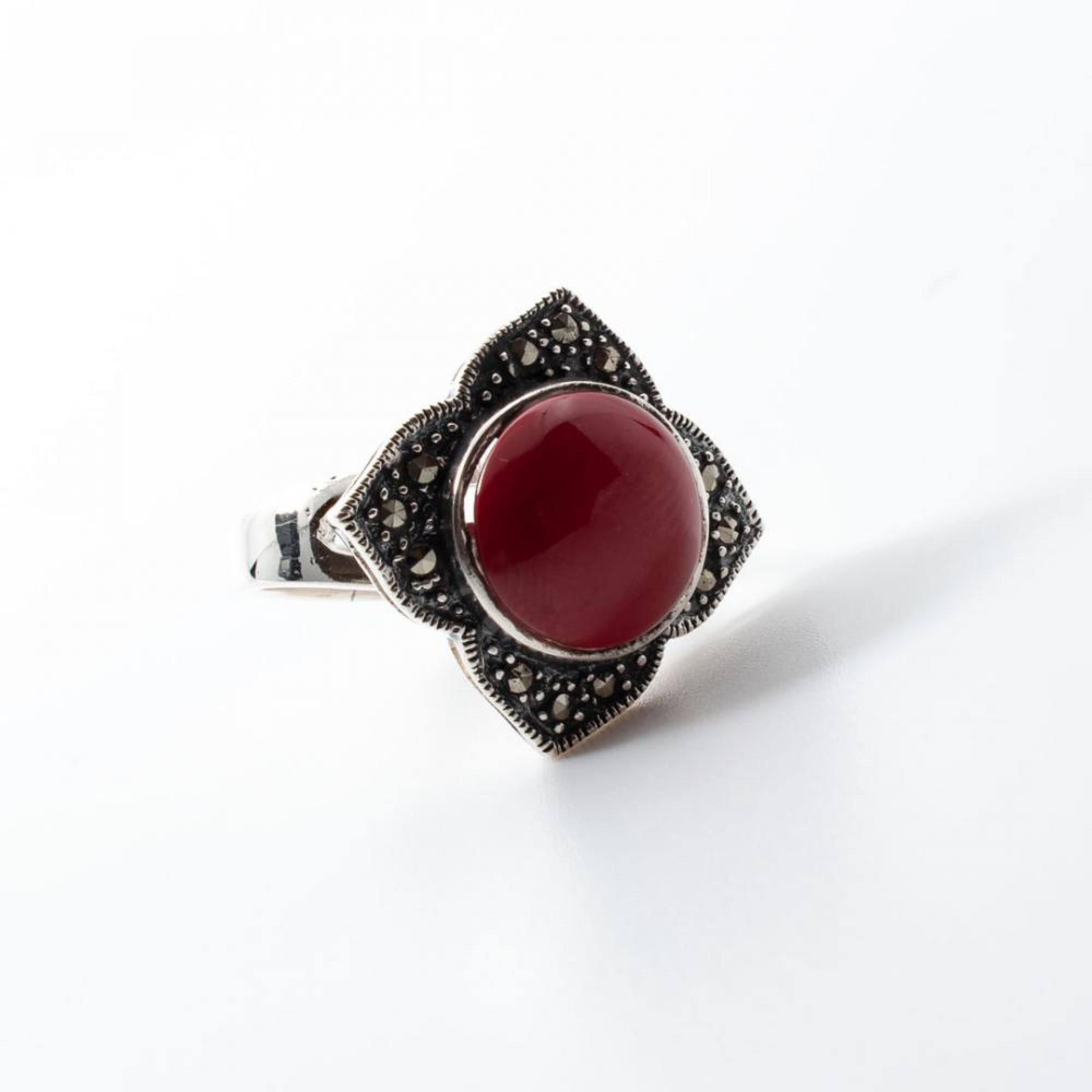 • Δαχτυλίδι με πέτρα κοράλι και μαρκασίτες