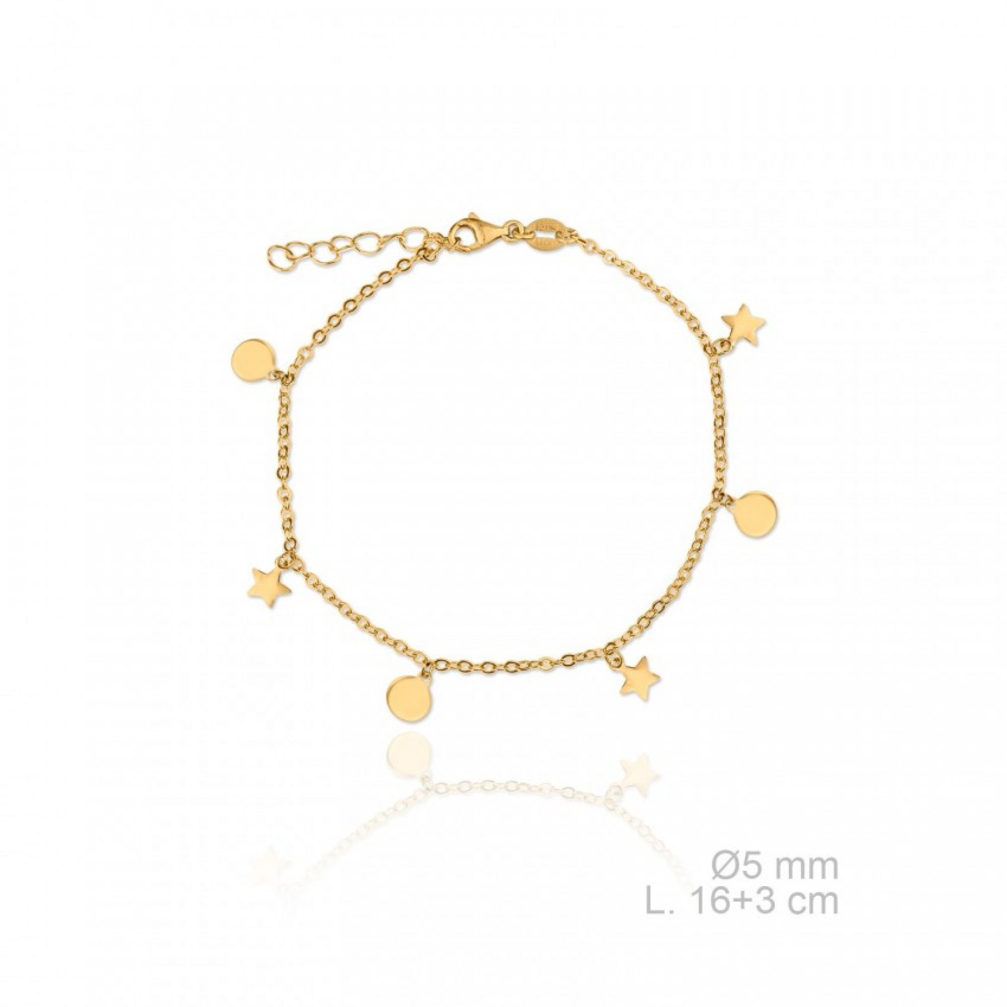 • Βραχιόλι επίχρυσο με κρεμαστά κυκλάκια και αστεράκια