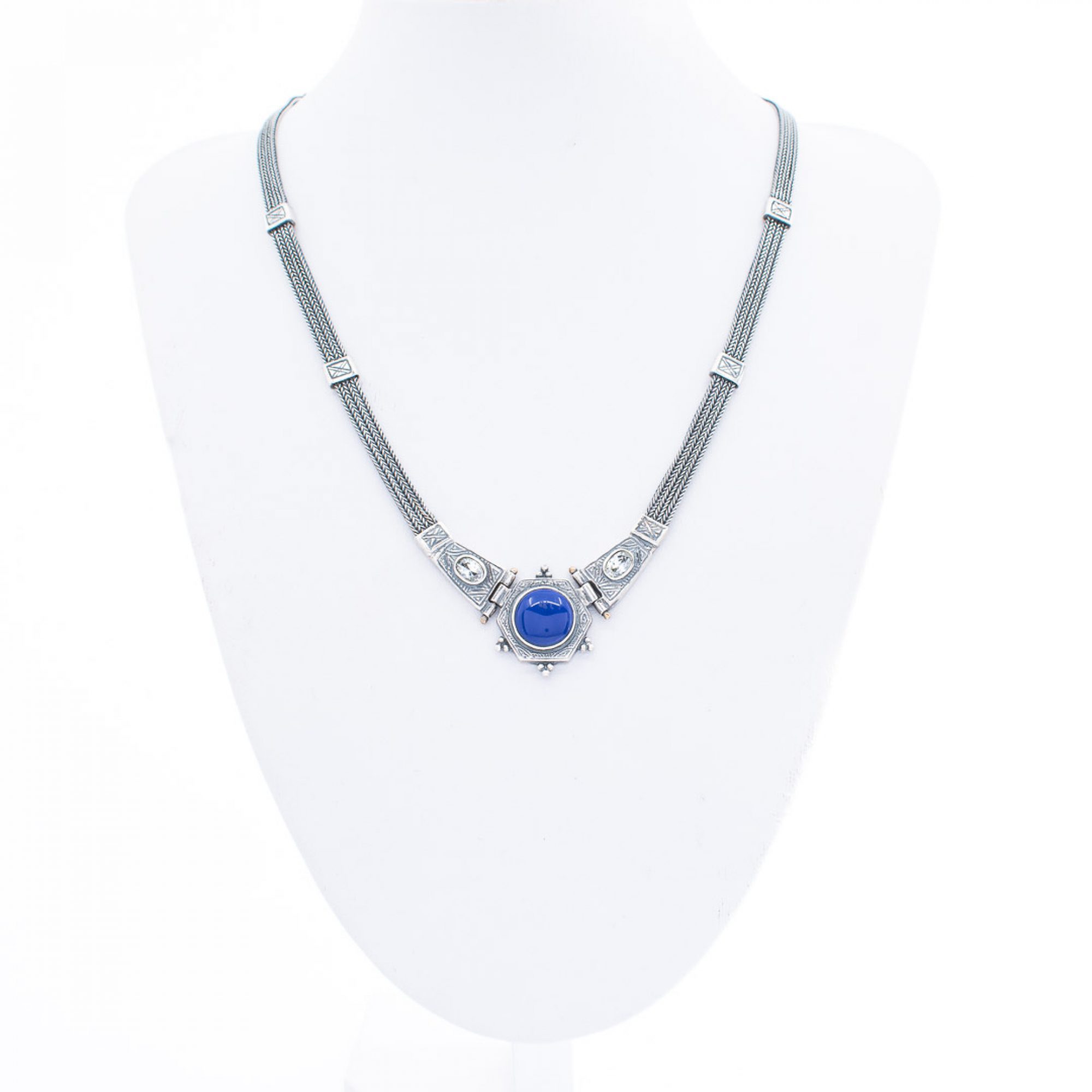 • Οξειδωμένο κολιέ με πέτρες λάπις λάζουλι και ζιργκόν
