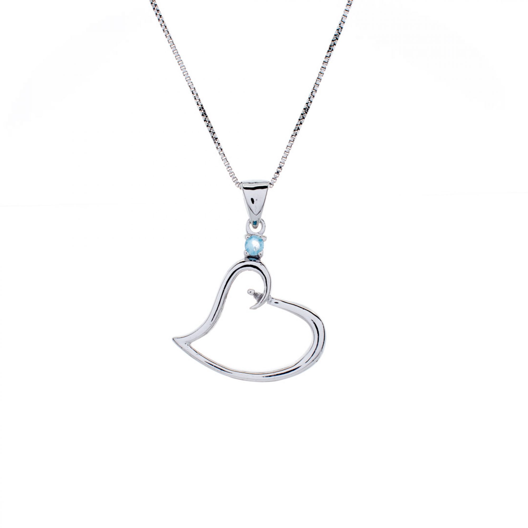 • Κολιέ καρδιά με άκουα μαρίν πέτρα