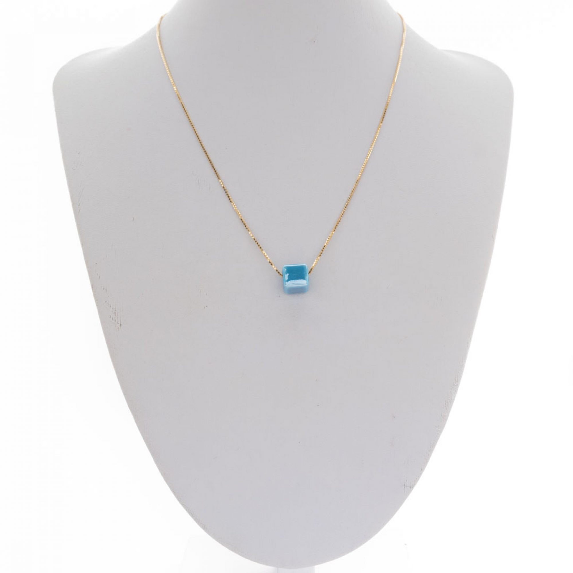 • Κολιέ επίχρυσο με χάντρα μπλε