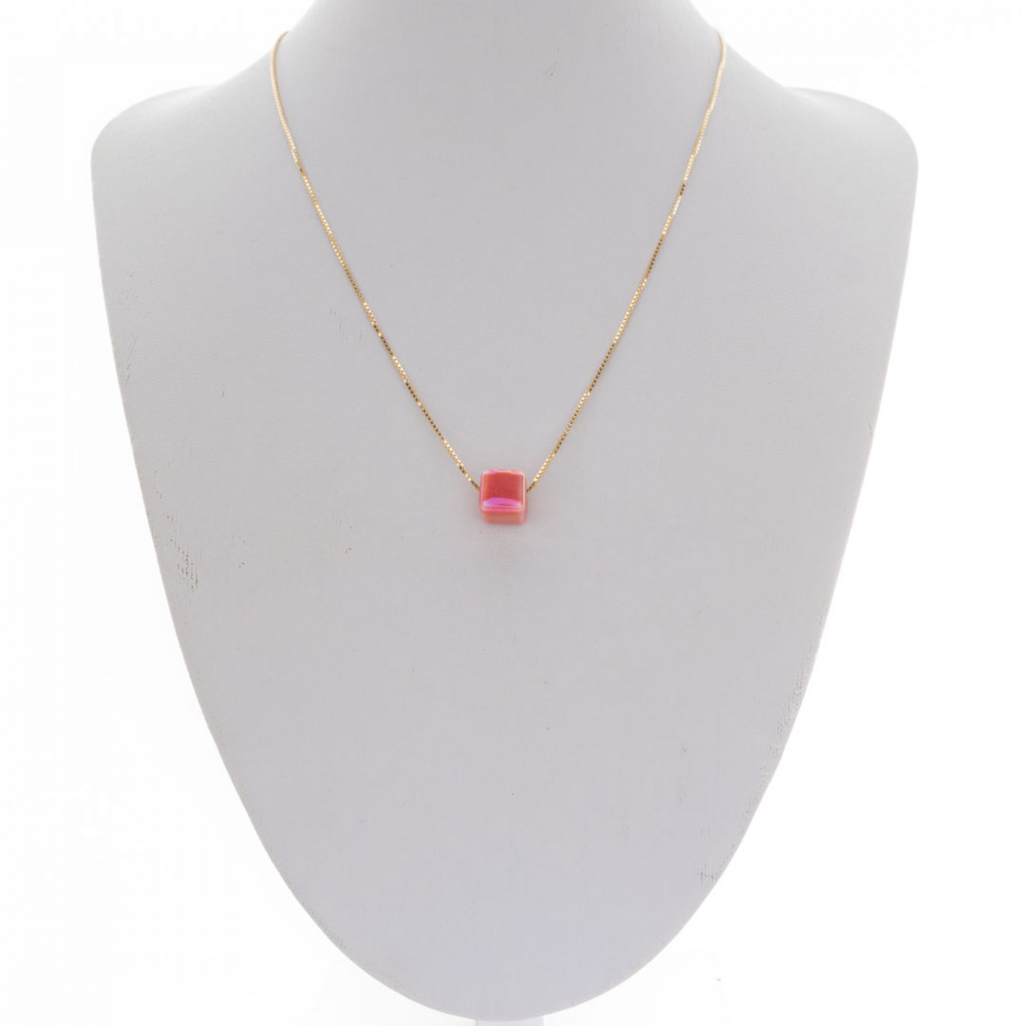 • Κολιέ επίχρυσο με χάντρα ροδακινί
