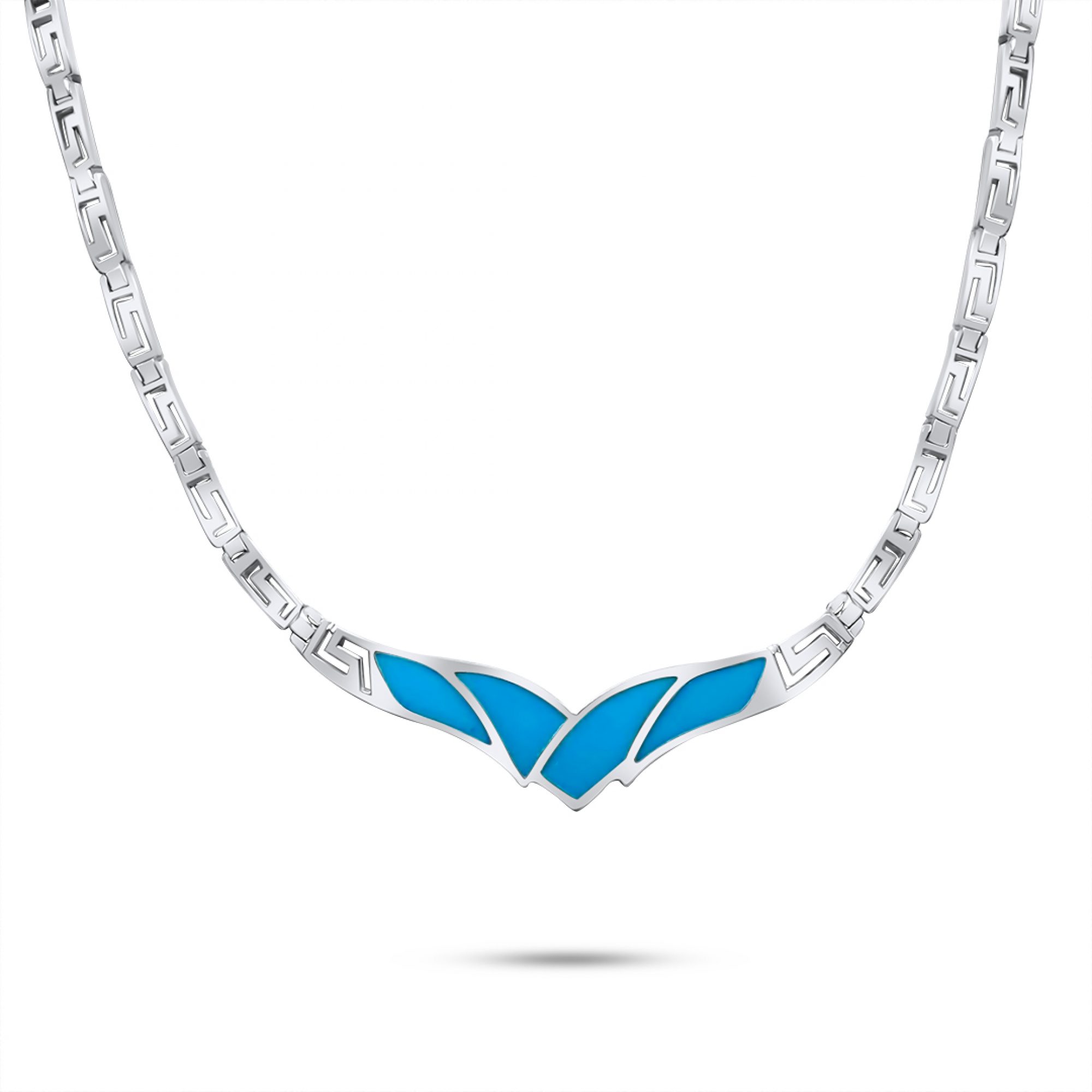 Εντυπωσιακό κολιέ μαίανδρος με πέτρες τιρκουάζ με αρχαιοελληνικές επιρροές για εμφανίσεις που ξεχωρίζουν.