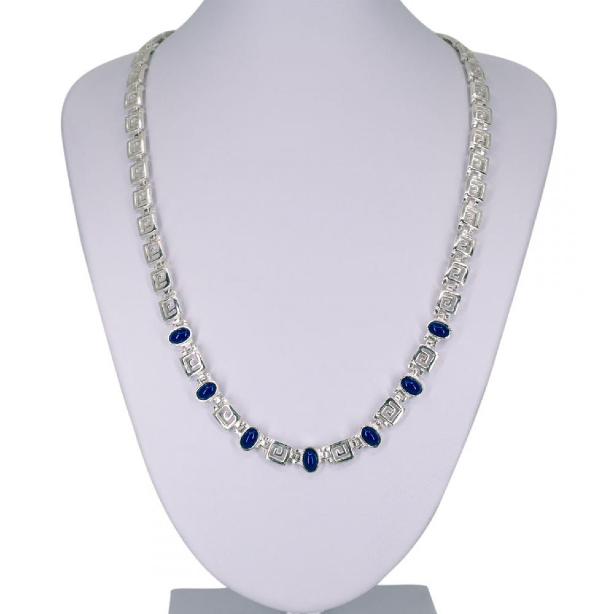 Εντυπωσιακό κολιέ μαίανδρος με πέτρες λάπις λάζουλι με αρχαιοελληνικές επιρροές για εμφανίσεις που ξεχωρίζουν.
