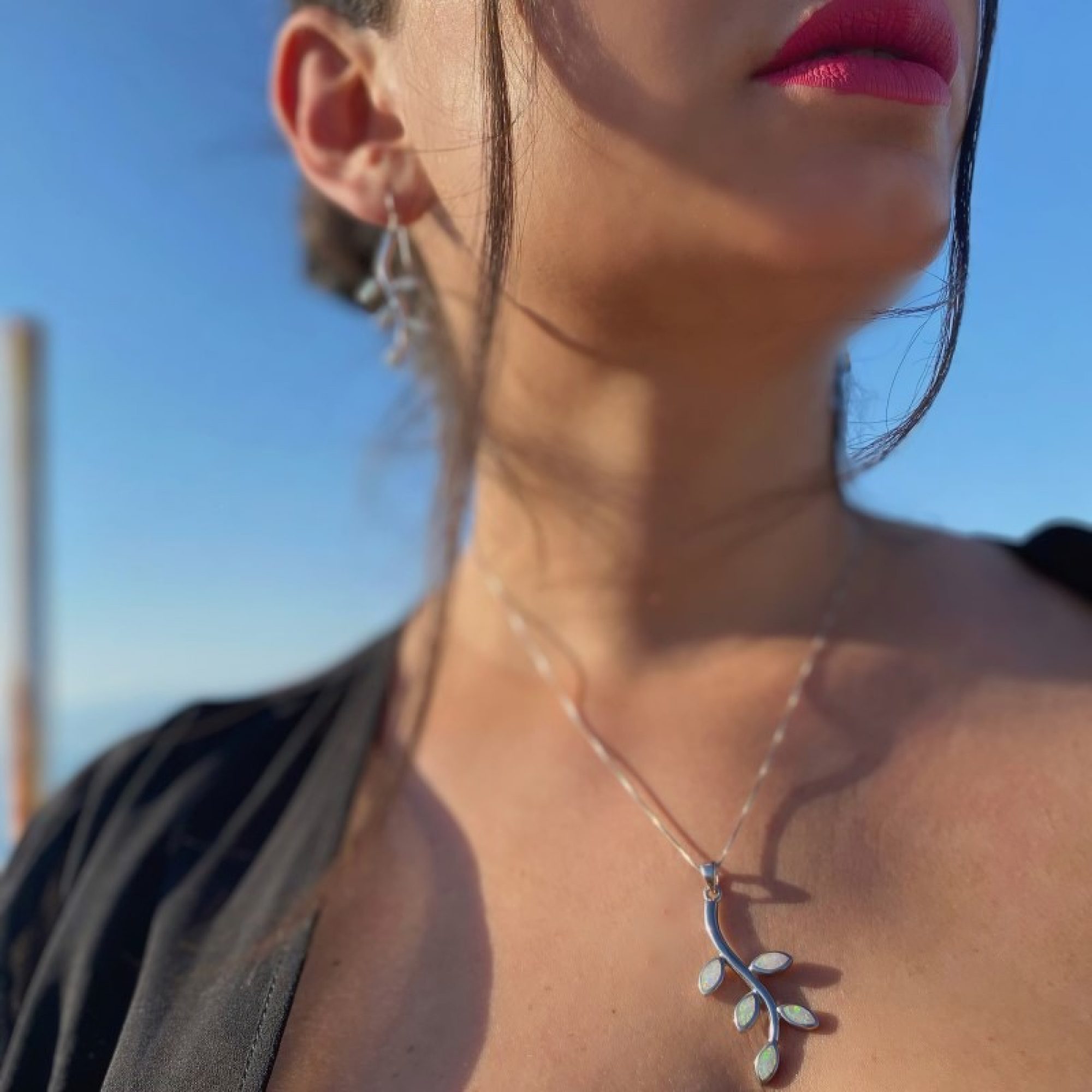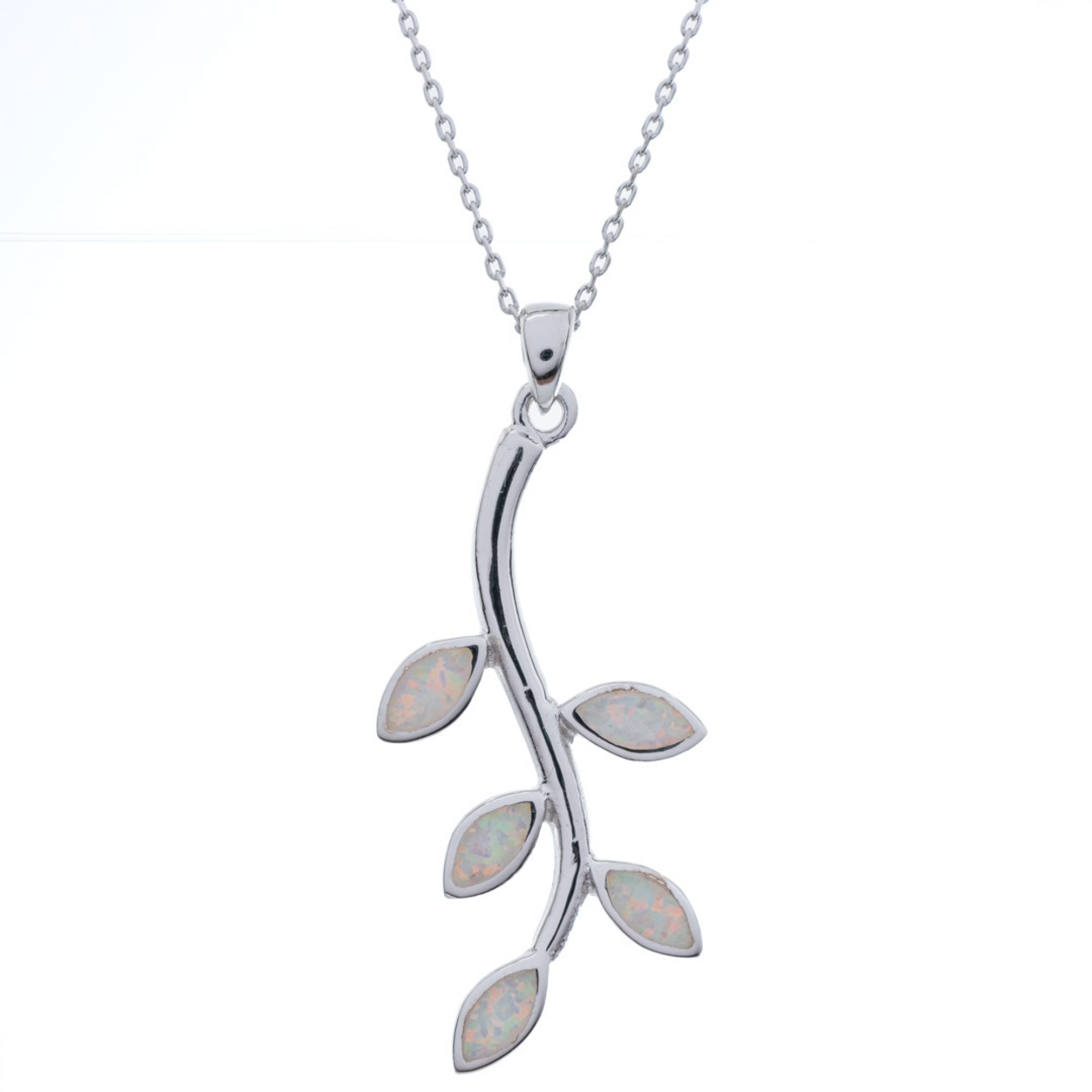• Κολιέ κλαδί ελιάς με λευκό όπαλ