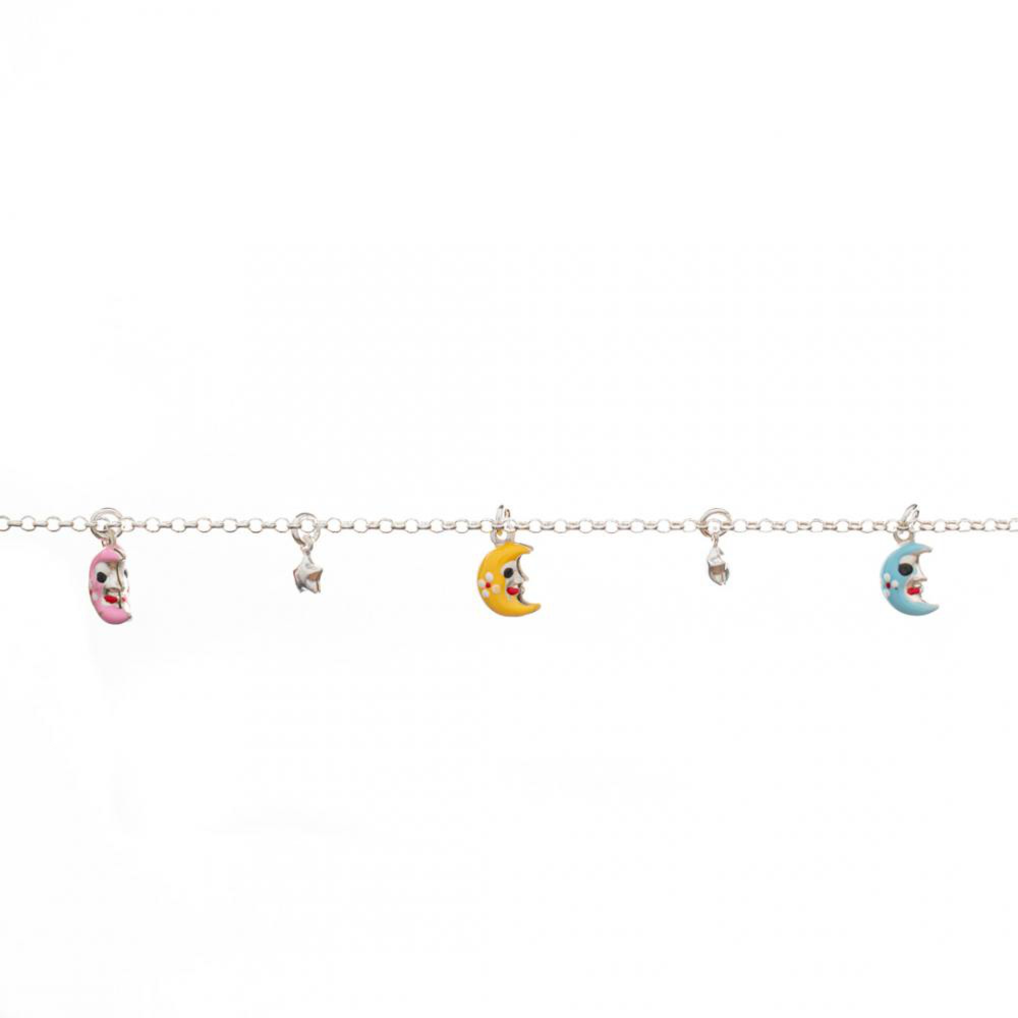• Βραχιόλι με κρεμαστά φεγγάρια με σμάλτο και ασημένια αστέρια