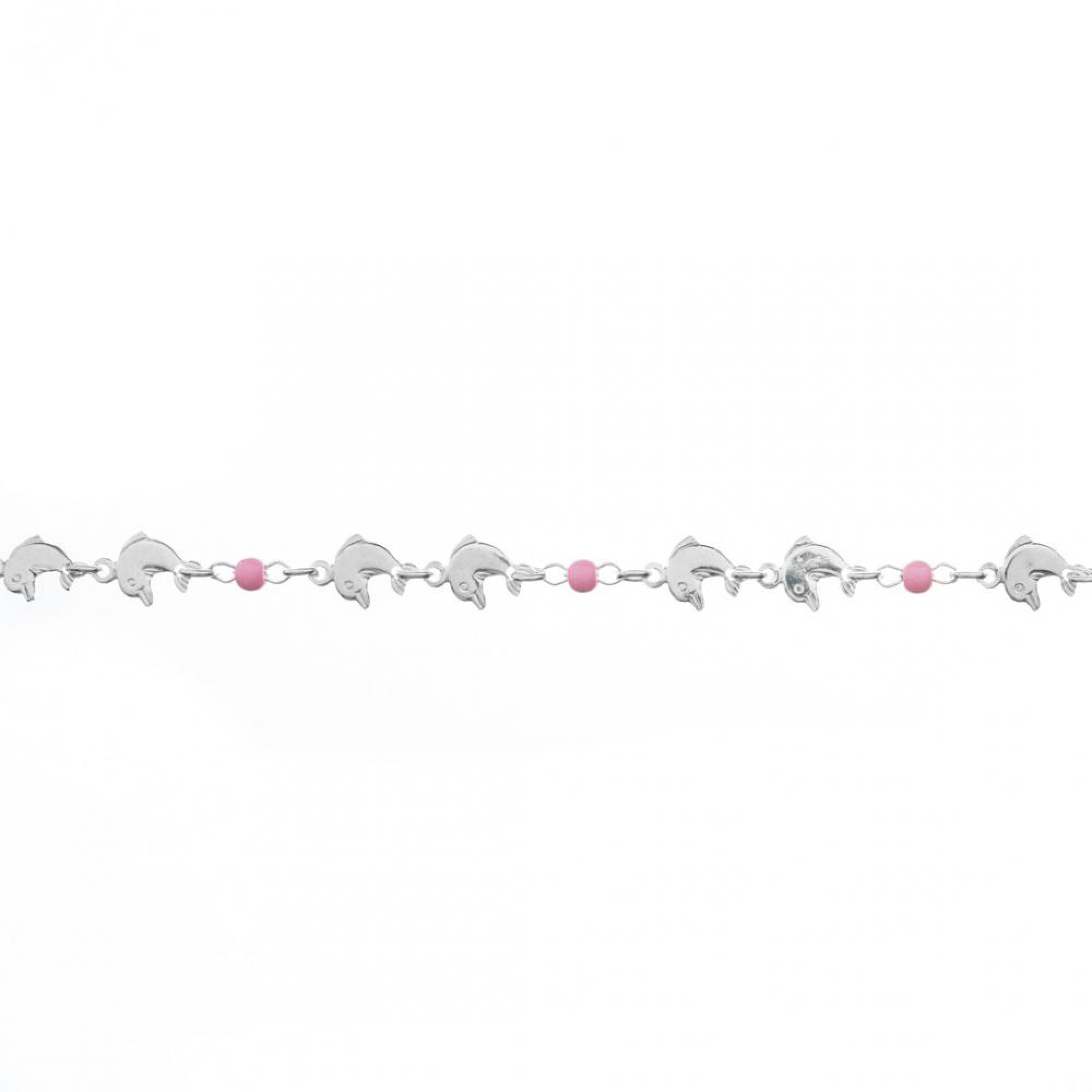 • Βραχιόλι με δελφίνια και ροζ χάντρες