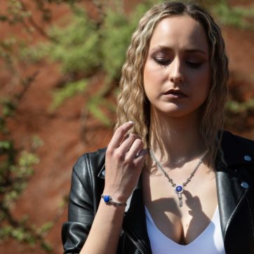 petsios Oxidised bracelet with lapis lazuli and zircon stones