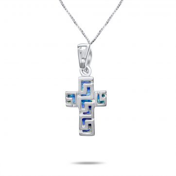 Silver cross pendants with opal stones, platinum-plated in order to remain unaltered over time. The prices include a chain of 40-55cm.